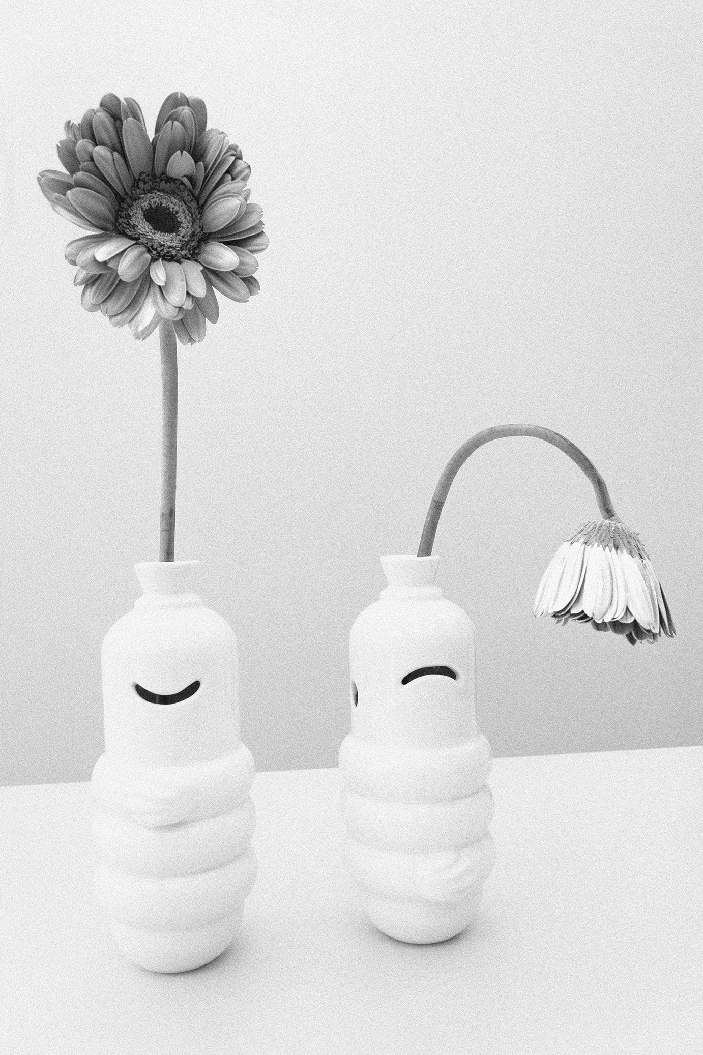 Smile not Smile es un objeto que representa al amor propio. Este florero se abraza envolviendo su silueta, creando un volumen armónico y clásico.
